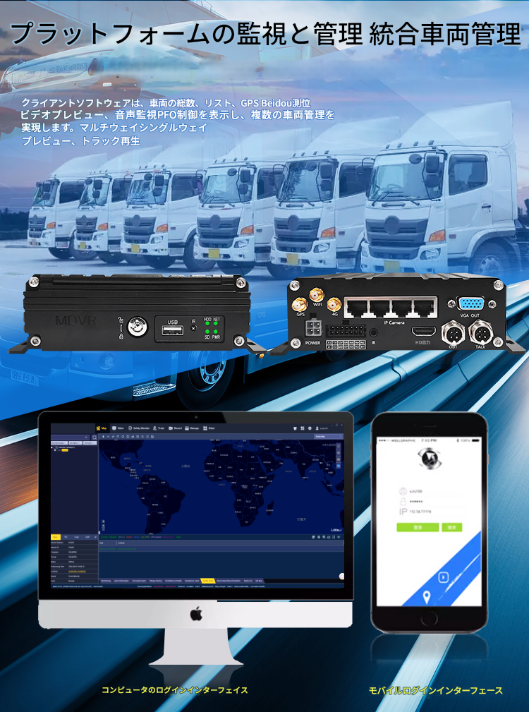 大型車向けに最適化した多チャンネル車載録画システム。